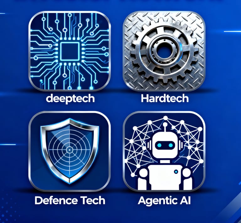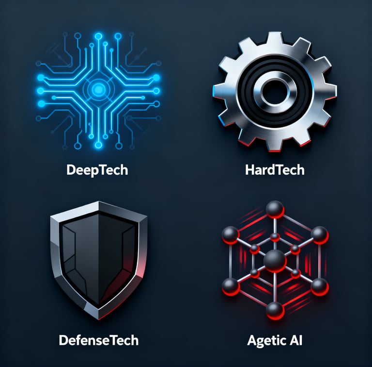 Deeptech, Softech, Hardtech, Defense Tech, Agentic AI MLM Models.